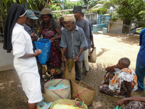 Le Suore lo sanno molto bene e da sempre sono impegnate ad aiutare i più bisognosi, e per sostenerle in questa opera caritatevole, l’associazione contribuisce acquistando tutti gli anni 30 sacchi di riso. Così ogni 15 giorni nel cortile della Missione di St Teresa si raduna una piccola folla di persone che dignitosamente si mettono in fila per ricevere quanto necessario al loro sostentamento. A Natale e a Pasqua c’è qualcosa in più, un po’ di zucchero, qualche candela, del caffè e del sapone, tutte cose a cui noi normalmente non pensiamo perché nelle nostre case non mancano mai. Ma che sono un piccolo tesoro per le persone che non le hanno e che non le possono acquistare, per le persone che sono sole e che possono contare solo sull’aiuto delle istituzioni religiose.